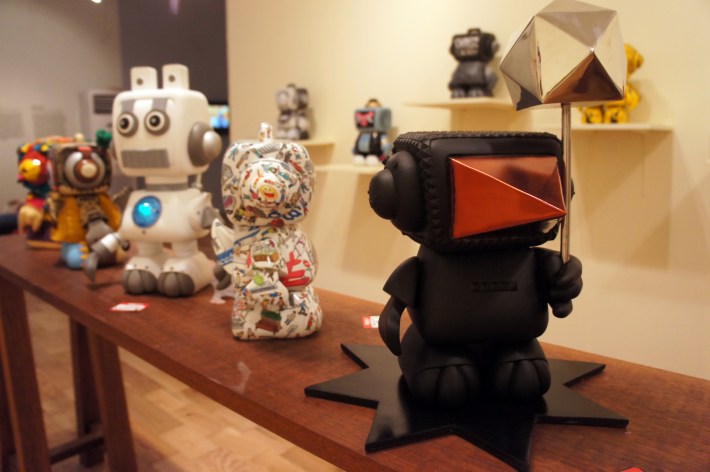 Each day, the significance of background designs become more prominent in the works of the married couple, Santi Ariestyowanti and Miko Bawono. Questions, disagreements, terror, rejections, and various forms of mockery to the visual culture (both popular and traditional) are present in a series of works by Indieguerillas. TV Eye is one of Indiguerillas attempt to expand the cope of their works. Following design, visual arts, now they are exploring the area of toys enthusiasts and creators. With similar creative patterns, they use Javanese culture images through popular vocabulary (Bagong’s bulky stature and Gatot Kaca’s wings represented as Superman), Indieguerillas invites 32 toy makers and artists to collaborate to make an army of TV figures who are at once hated and beloved by the current generation.