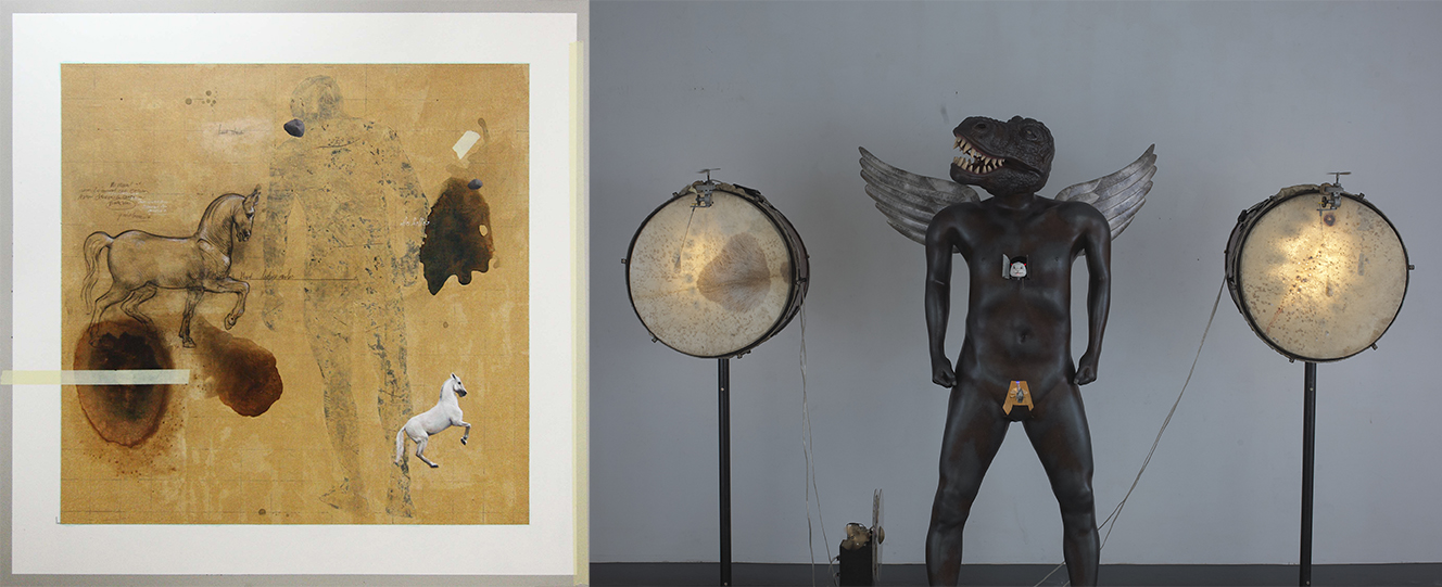The works of Heri Dono (b. 1960) and Jumaldi Alfi (b. 1973) revolve around the idea of self-portraiture and self-as-knower. Both uses themselves and quite often the image of themselves as a standpoint and to deliver their means. The latter term comes from William James’s concept of self: I (self-as-knower or active agent of experience) and Me (self-as-known or the content of experience or the empirical self). Three aspects of Me includes the material self, the social self and the spiritual self.