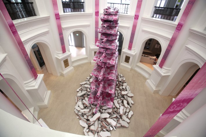 It seems as if there are corrections of the images that I’ve stored in my mind, all of a sudden popping up in my head and conducting internal dialogues with my being. As soon as a new image appears, this process takes place. I think it’s because of the accumulation of the many other things that I’ve seen and experienced, which then transform the original form of the image.”(4) During our discussion to prepare for this exhibition, Teddy decided to stop using images of tanks. He has taken such decisions before with the chicken-head image, which he then “imprisoned” in a resin cube. To him, such “imprisonment” is a symbol of his stance. Obviously, this time he would not be freezing his 7.5 meter-high tank pagoda, but we should not be surprised if he ends up “freezing” one of his tank merchandises as a symbolic act. That is what he does. He reinforces his convictions through his acts upon his works.
